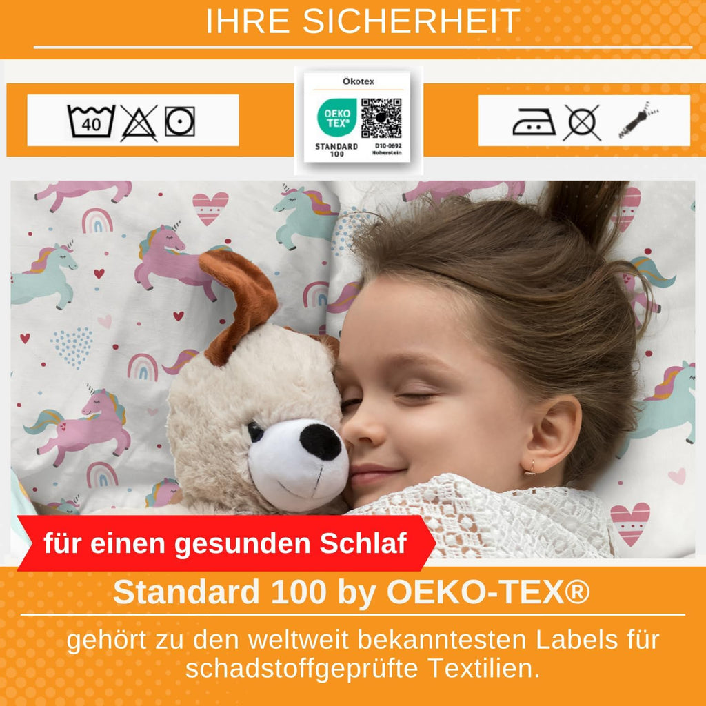 • 🦄 LIEFERUMFANG: Zauberhaftes Mädchen-Bettwäsche-Set mit Einhorn, bestehend aus 1 x Bett-Bezug 135-x-200 cm und 1 x Kissen-Bezug 80-x-80 cm - ideal für die kalte Jahreszeit!