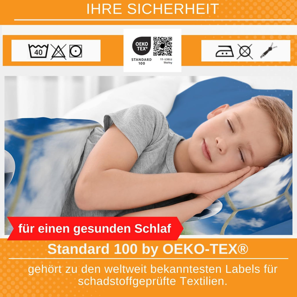 - 🎁 LIEFERUMFANG: cooles Kinderbettwäsche-Set Fußball-Fan, bestehend aus 1 x Bett-Bezug 135x200 cm und 1 x Kissen-Bezug 80x80 cm. Dieses Design eignet sich gut als Geschenk-Idee für Jungen zu Weihnachten und zum Geburtstag.