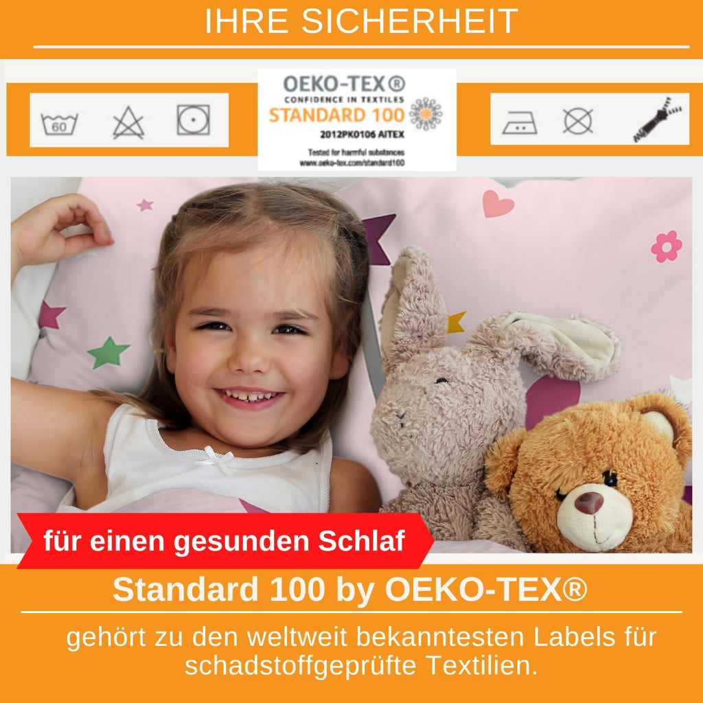 • ✅ Unser Klein-Kinder-Bettbezug in der Qualität Biber ist weich und kuschelig. Unsere Bettwäsche ist OEKO-TEX STANDARD 100 zertifiziert (17.HPK.23879 Hohenstein), schadstoffgeprüft und besonders hautsympathisch.