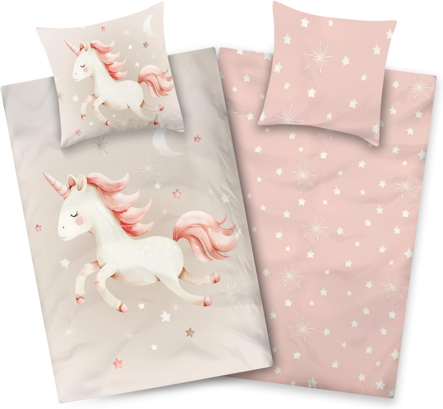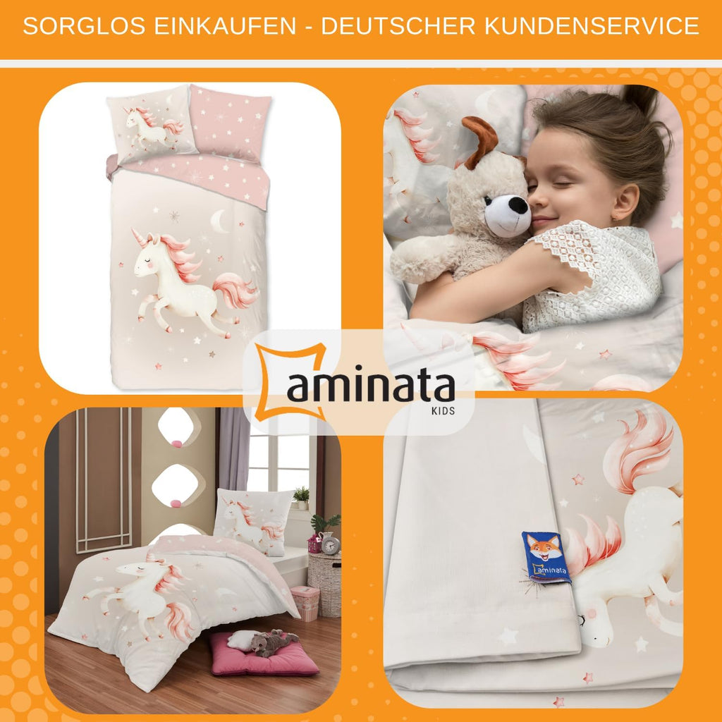 - 🎁 LIEFERUMFANG: süßes Kinder Einhornbettwäsche-Set, bestehend aus 1 x Bett-Bezug 135x200 cm und 1 x Kissen-Bezug 80x80 cm. Dieses Design eignet sich gut als Geschenk-Idee für Mädchen zum Geburtstag oder Weihnachten.