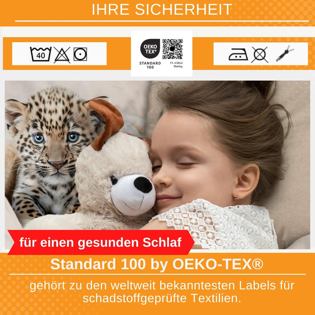 - ☁️ Baumwolle – ÖKO-TEX Zertifiziert: Unsere hochwertige Kinderbettwäsche besteht zu 100% aus Baumwolle (Renforcé), einem atmungsaktiven Material, das besonders hautsympathisch ist. Sie ist OEKO-TEX STANDARD 100 zertifiziert (PK 11-53852 Shirley), schadstoffgeprüft und bietet optimalen Schlafkomfort für sensible Kinderhaut.