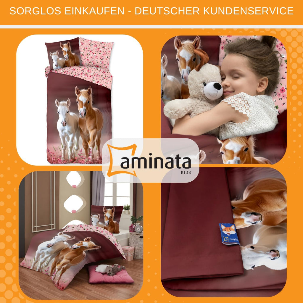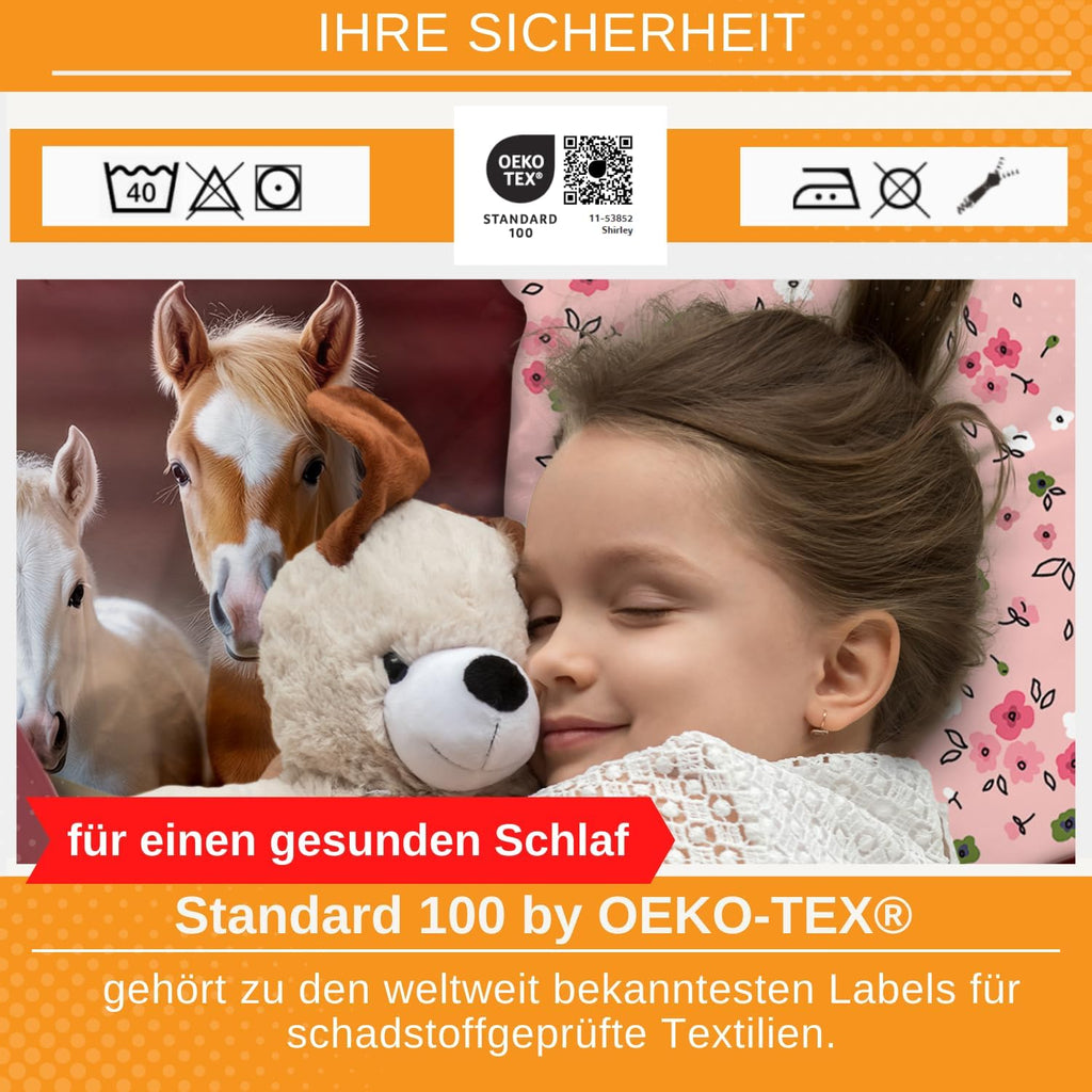 - 🎁 LIEFERUMFANG: süßes Kinder Bettwäsche-Set Pferde, bestehend aus 1 x Bett-Bezug 135x200 cm und 1 x Kissen-Bezug 80x80 cm. Dieses Design eignet sich gut als Geschenk-Idee für Jungen, Jungs und Mädchen.