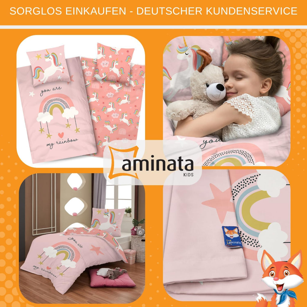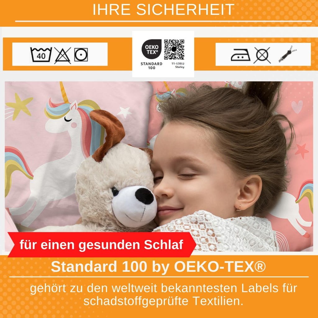 - 🦄 Zauberhafte Einhorn-Träume & Set-Inhalt: Dieses Kinderbettwäsche-Set (1x 135x200 cm Bettbezug mit Wendemotiv, 1x 80x80 cm Kissenbezug) lässt dein Kind von Einhörnern, Regenbögen und Sternen träumen. Eine märchenhafte Schlaflandschaft für kleine Prinzessinnen – die ideale Geschenk-Idee!