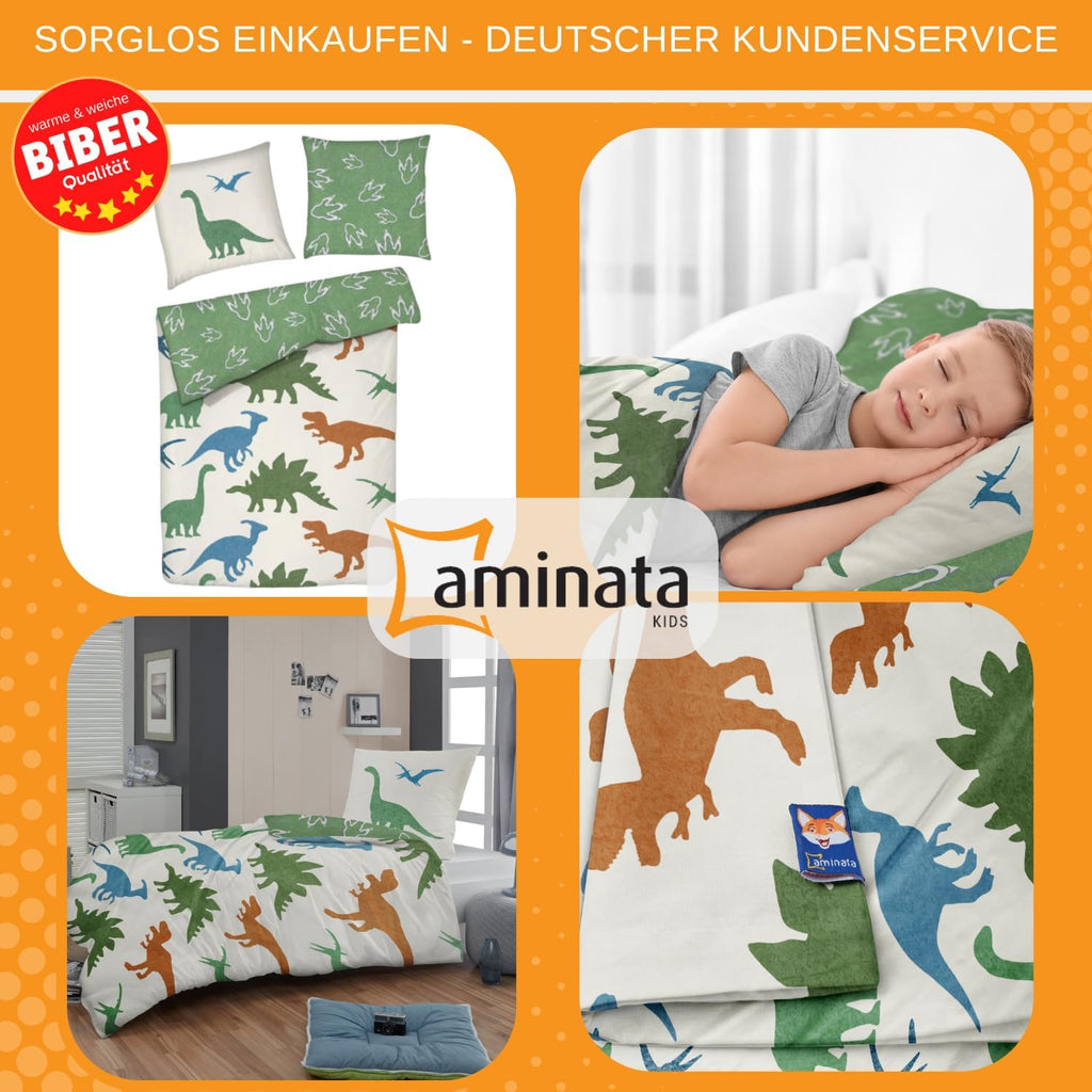 🎁 LIEFERUMFANG: Kuscheliges Kinder Biber-Bettwäsche-Set, bestehend aus 1 x Bett-Bezug 135-x-200 cm und 1 x Kissen-Bezug 80-x-80 cm. Wendebettwäsche!