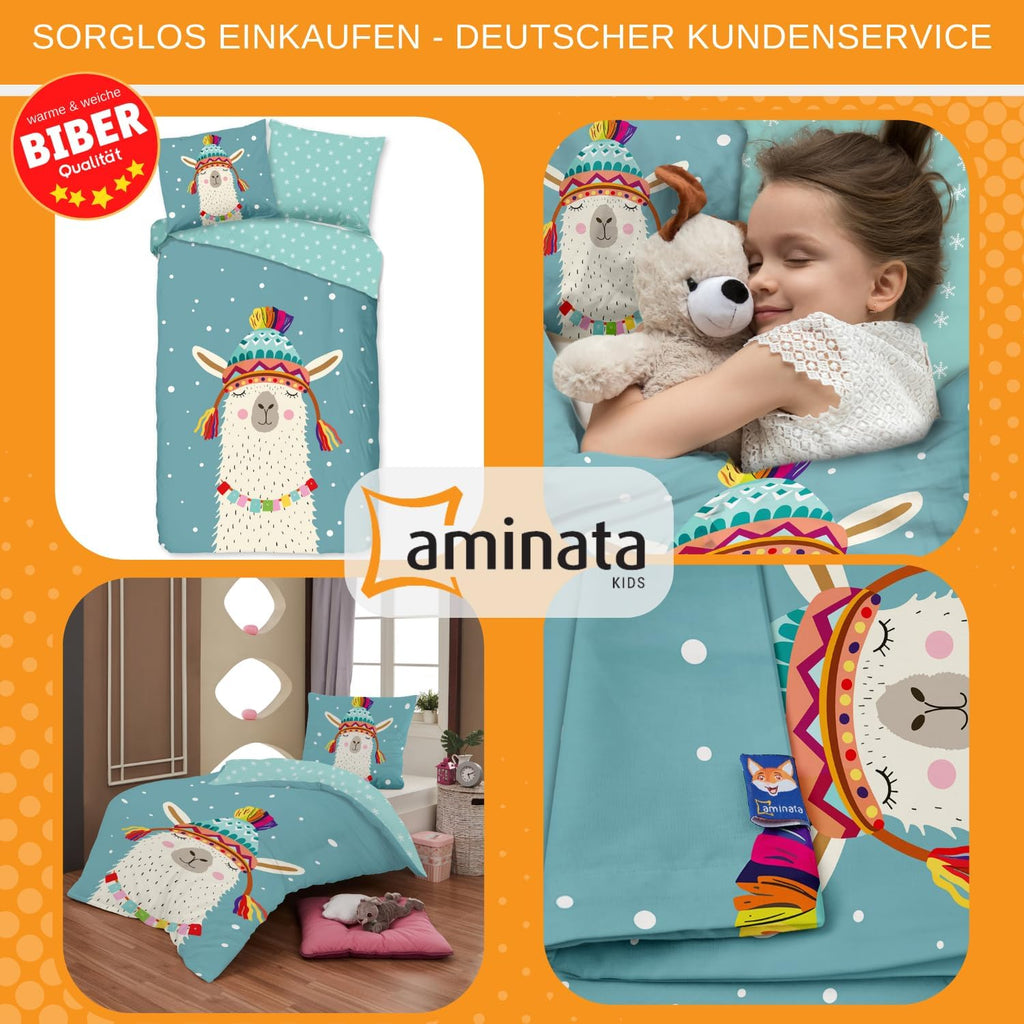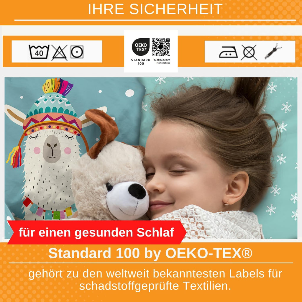 - 🎁 LIEFERUMFANG: süßes Kinder-Jugend-Flanell-Bettwäsche-Set Lama türkis, bestehend aus 1 x Bett-Bezug 135x200 cm und 1 x Kissen-Bezug 80x80 cm. Dieses Design eignet sich gut als Geschenk-Idee für Mädchen